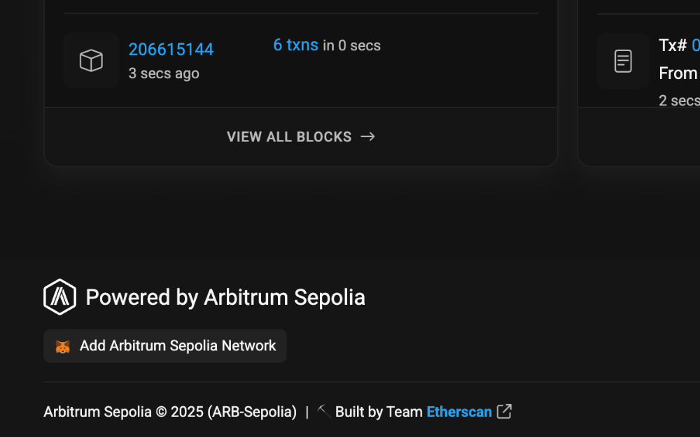 It is very likely that you'll also need to add Arbitrum Sepolia, Base Sepolia and Unichain Sepolia network, that you can do by visiting their explorers (sepolia.arbiscan.io, sepolia.basescan.org, sepolia.uniscan.xyz), scrolling down and click the "Add Network" button: